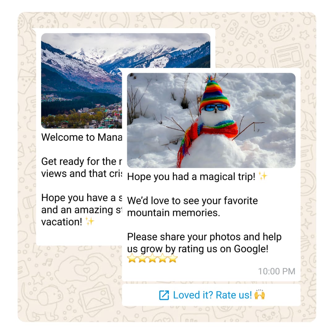 Provide a seamless travel experience on autopilot. From sending critical pre-trip information to providing daily updates during the journey, our system handles it all. It even takes care of the post-trip follow-up, collecting reviews 24 hours after the trip is over.